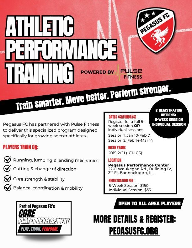 Pegasus FC has partnered with Pulse Fitness to deliver this specialized program designed specifically for growing soccer athletes.